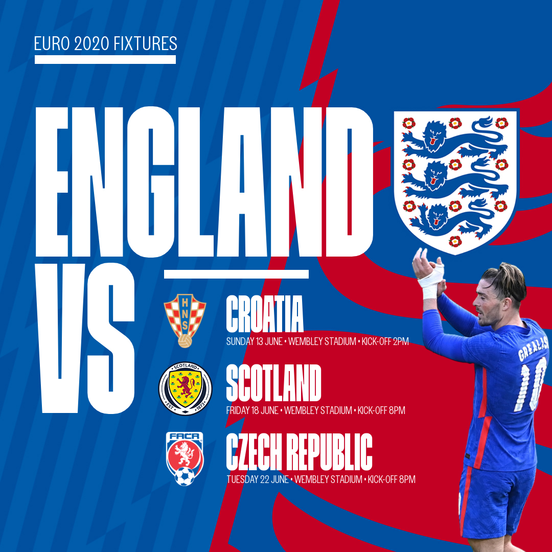 England Euro 2020 Fixtures / Euro 2020 England S Route To Last Fixtures Venues Dates : Euro 2021 fixtures & results.. England fans are very excited to see jack grealish starting tonight! Must have previously deposited with a debit card, apple pay or. Get all the info for every match. Full fixtures list for euro 2020. England will face croatia, czech republic and scotland in the euro 2020 group stage.